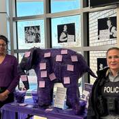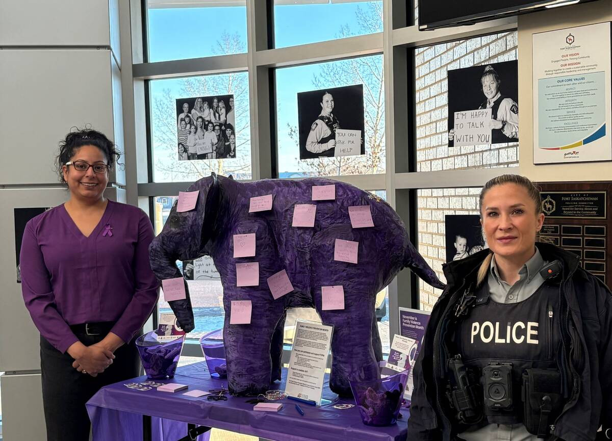 Fort Sask., Alb. – En novembre, les citoyens ont peut-être remarqué la présence d’éléphants violets à l’intérieur du Détachement de la GRC de Fort Saskatchewan, à l’hôtel de ville de Fort Saskatchewan et à Harbor Pool, car novembre est le Mois de la prévention de la violence familiale. La campagne « Let’s talk about the elephant in the room » (Parlons de l’éléphant dans la pièce) encourage les discussions parmi les citoyens, les conscientise et leur présente des ressources vitales et du soutien. L’éléphant violet sert d’euphémisme pour aider les gens à s’engager dans des conversations ouvertes sur des sujets difficiles. En novembre, Ellie se trouve au Détachement de la GRC de Fort Saskatchewan.