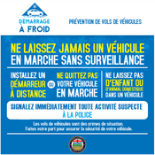 « Laisser votre véhicule en marche pour le garder au chaud peut être pratique pour les voleurs qui cherchent à voler des moyens de transport pour commettre d’autres crimes », déclare le sergent d’état-major Luke Halvorson, Groupe de la sécurité et du bien-être communautaires de la GRC en Alberta. « L’opération Cold Start vise à réduire le vol d’automobiles en sensibilisant les Albertains aux mesures qu’ils peuvent prendre pour assurer la sécurité de leur véhicule. »