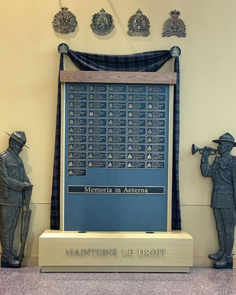 Le Mur de l'excellence a été érigé afin de reconnaître les membres qui ont perdu la vie, en Alberta, dans le cadre de leurs fonctions depuis 1876.