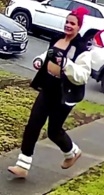 Une femme est sortie du côté passager arrière du VUS, s’est dirigée vers le porche de la résidence, a saisi un gros colis, est retournée au véhicule et a placé le colis dans le coffre. Une deuxième femme est sortie du côté passager avant du VUS, s’est précipitée vers la porte d’entrée de la résidence et a saisi un autre colis qu’elle a ensuite placé dans le coffre du VUS.