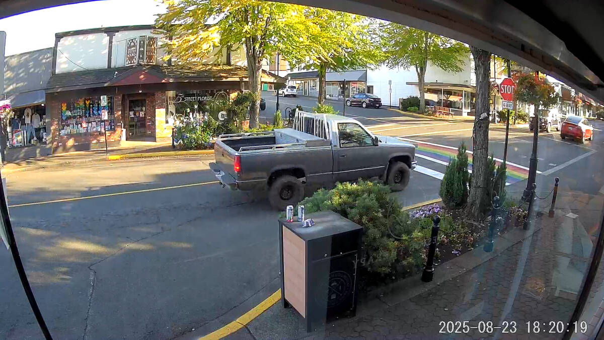 La police diffuse une photo afin d’identifier le conducteur d’un camion qui a endommagé le passage piétonnier arc-en-ciel au thème de la fierté sur 5th Street à l’angle de l’avenue Duncan à Courtenay. L’incident a eu lieu le 23 août 2025, vers 18 h 20.