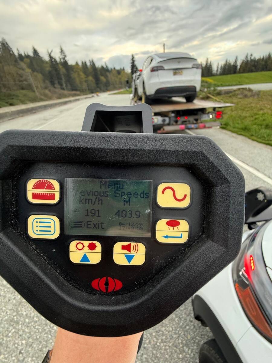 Le 12 avril 2026, vers 17 h 45, l’équipe de promotion de la sécurité routière du Détachement de la GRC de Maple Ridge effectuait un contrôle de vitesse dans l’îlot 25200 de la route Lougheed lorsqu’elle a aperçu une Tesla blanche roulant à grande vitesse. Selon les résultats d’un lecteur au laser, la Tesla roulait à 191 km/h dans une zone où la limite de vitesse affichée est 80 km/h (111 km/h au-dessus de la limite permise). Une fois arrêté, le conducteur a été soumis à un test effectué à l’aide d’un appareil de détection approuvé (ADA) après avoir montré des signes de facultés affaiblies. Le conducteur a échoué ce test, ce qui signifiait que son alcoolémie était supérieure à 100 mg/100 ml.