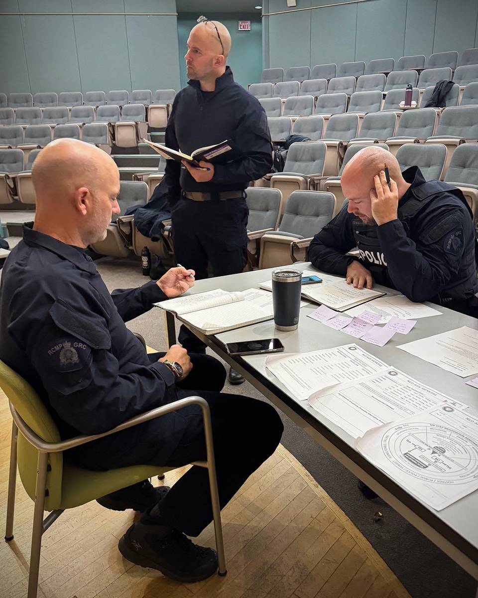 Les groupes, qui font partie du Programme des incidents critiques de la GRC en Colombie-Britannique, se sont réunis sur un campus de Nanaimo en novembre 2025. Ils y ont suivi, pendant deux jours, une formation intense axée sur des mises en situation censées donner l’impression d’être réelles, grâce à la participation d’étudiants de l’Université Vancouver Island qui se sont portés volontaires pour jouer des acteurs. Les équipes se sont rassemblées afin de suivre une formation principalement axée sur les compétences essentielles en désescalade pour les 20 négociateurs en situation de crise de la GRC en poste sur l’île.