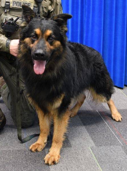 Le chien policier Shelby et la gendarme Alexandra Bourque ont effectué leur premier quart de travail en septembre. Le profil de travail de Shelby est celui de la première ligne et de la détection d’explosifs. Il aime tous les jouets, mais ses préférés sont ses Kongs, ses mordillements et sa balle. Shelby porte un héritage de bravoure et de service, puisqu’il a été nommé en l’honneur du gendarme Shelby Patton, tué en service en Saskatchewan en 2021.