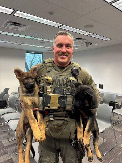 Le 4 mars 2026, le Quartier général de la GRC en Colombie‑Britannique a accueilli quelques nouveaux chiots au programme de dressage. Le caporal Michael Jordan et le gendarme Ross Findlay, accompagnés des chiens Lucy et Kanto, des SCI du DLM, ont accueilli quelques jeunes chiots dans la région et parlé des différents types d’entraînement réalisés par les maîtres, les figurants et les imprégnateurs.