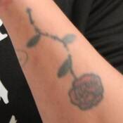 - tatouage d’une rose sur l’avant-bras gauche;