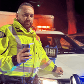 [Dans le plan suivant, le conducteur souffle dans un éthylomètre.]