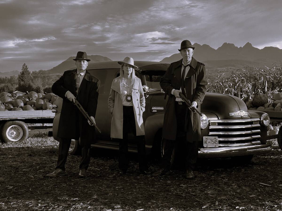 Toutefois, quelque part entre le labyrinthe de maïs et la charrette de citrouilles, quelque chose ne collait pas. Avec leurs armes de poing et leur fourgon cellulaire en remorque, les détectives ont parcouru les lieux en long et en large. Ils n’ont trouvé que des traces de pneus, des emballages de bonbons et un épouvantail nerveux. Ils n’ont rien résolu non plus en menant une opération d’infiltration pour obtenir les derniers renseignements sur les manigances dans le labyrinthe de maïs. Finalement, un arrêt au bureau du shérif s’est avéré infructueux : les garçons ne pouvaient tout simplement pas s’empêcher de faire les fous. Résumé : Trois détectives, une voiture ancienne et un insigne à chaque mystère. La fête d’Halloween est peut-être pleine de tours, mais ces trois-là sont toujours sur l’affaire! D’ici la prochaine fois, joyeuse Halloween!