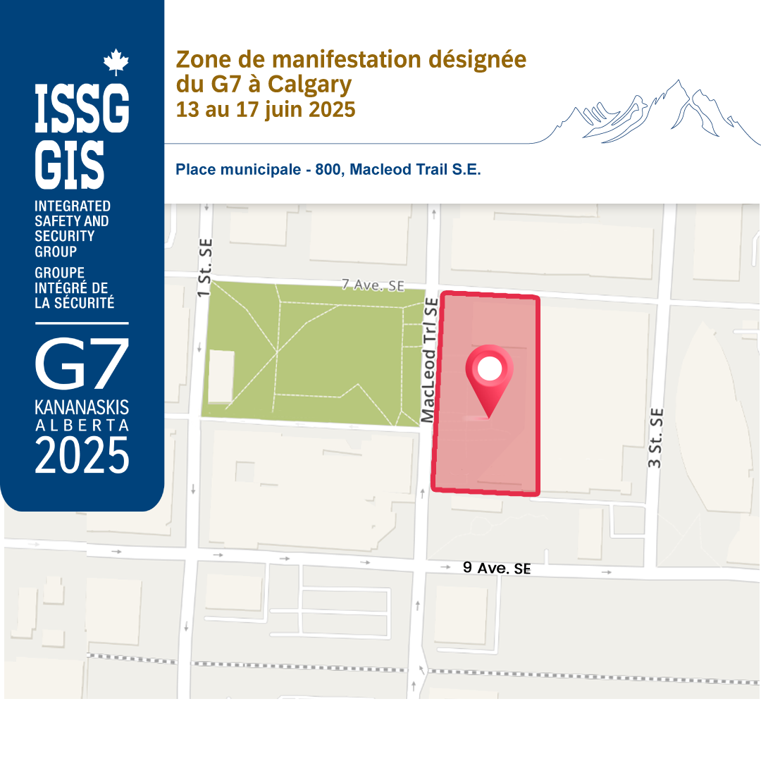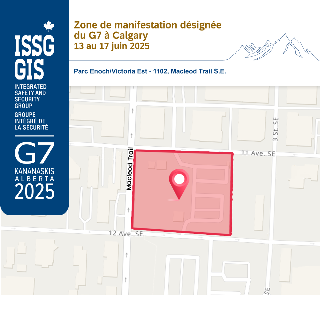 Pour aider le public à s'exprimer de façon pacifique pendant le Sommet du G7 de 2025, des zones de manifestation désignées ont été aménagées à Banff et à Calgary. Des agents seront présents pour défendre les droits des manifestants tout en assurant la sécurité publique pour tous.