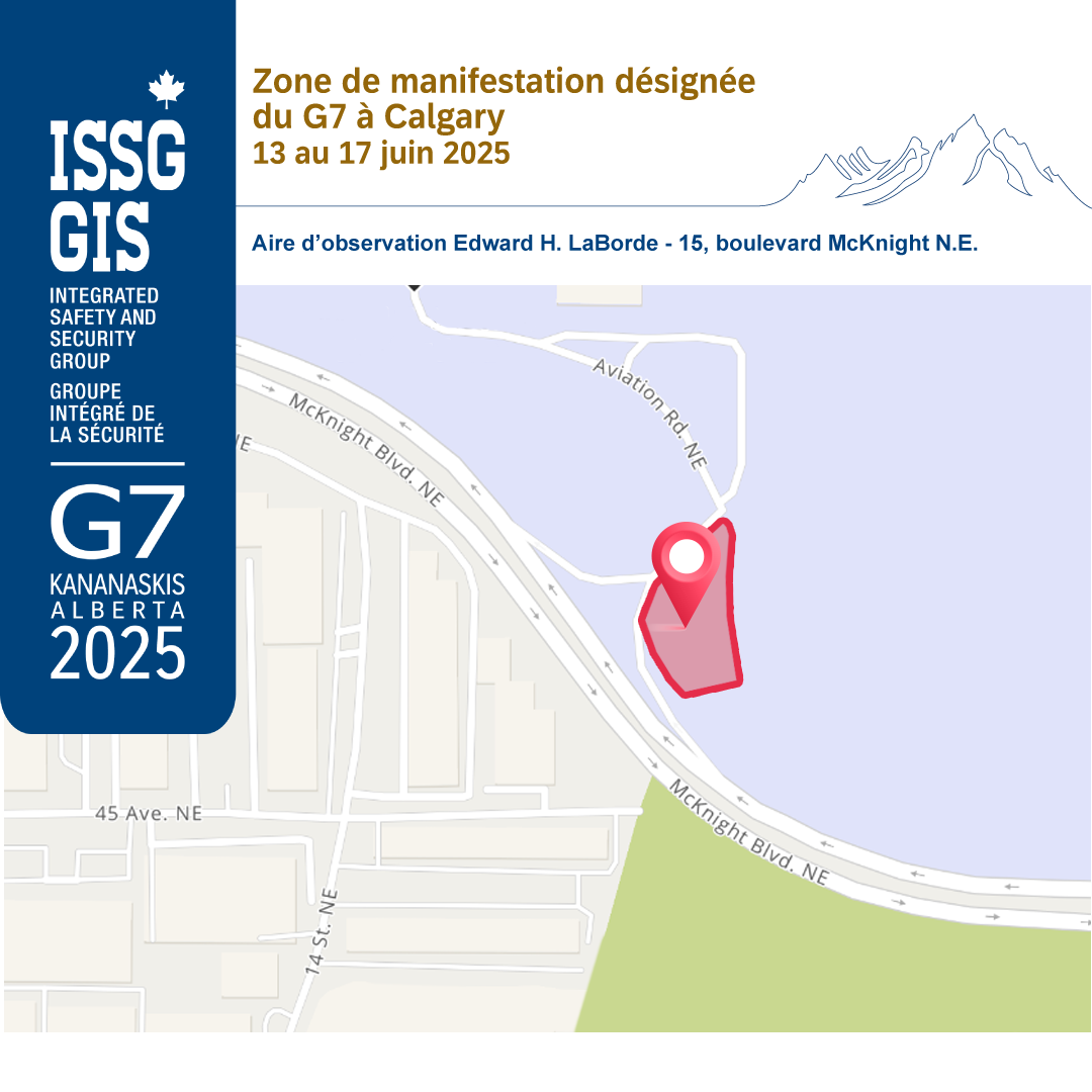 Une zone de manifestation désignée supplémentaire est située près de l'aéroport de Calgary, à l'aire d'observation Edward H. LaBorde, intersection de la 15e rue et du boul. McKnight NE.