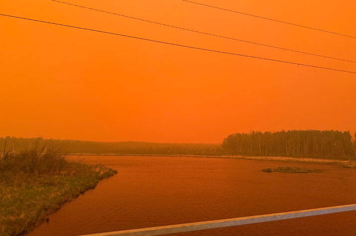 Les feux de forêt de l’été dernier ont baigné la région de La Ronge, en Saskatchewan, d’une lueur orange foncé.