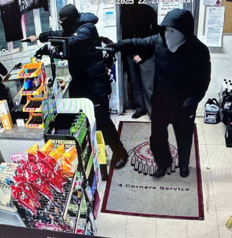 On pense que ces mêmes suspects ont également cambriolé une station-service à Swan Lake First Nation le 9 février à 22 h 30. Lors de cet incident, quatre suspects décrits de la même manière ont été vus sortir d'une berline Mercedes de couleur bleu foncé, deux d'entre eux armés de pistolets, l'autre d'une batte de baseball, et ils se sont enfuis avec de l'argent.