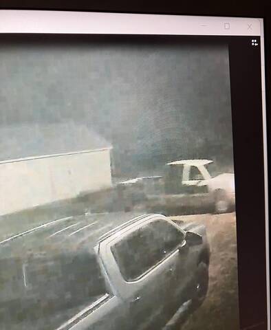 Les deux suspects, qui ont été filmés par des caméras de surveillance, ont pris la fuite à bord d'une camionnette décrite comme une GMC avec un capot blanc, un toit blanc et des côtés de couleur foncée. La camionnette se serait enfuie vers l'est sur la route provinciale 261.