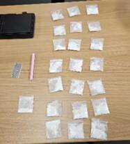 En fouillant le suspect, les agents ont trouvé de nombreux paquets contenant de la poudre blanche qu’on croit être de la cocaïne, enveloppée dans une pellicule plastique, ainsi que des accessoires liés à la drogue et de l’argent comptant.