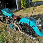 Il s’agit d’une Harley-Davidson Sportster 1000, bleu vert, de l’année 1980, plaque d’immatriculation du Nouveau-Brunswick YWX01, et numéro d’identification du véhicule 3A23009J0.