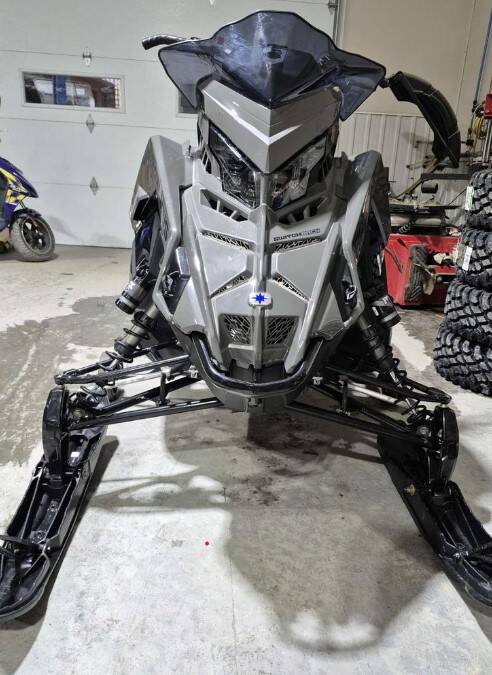La motoneige est une Polaris Switchback grise de 2024. Elle porte la plaque d’immatriculation du Nouveau-Brunswick YI3306 et le numéro d’identification de véhicule SN1TLP8R0RC209151.