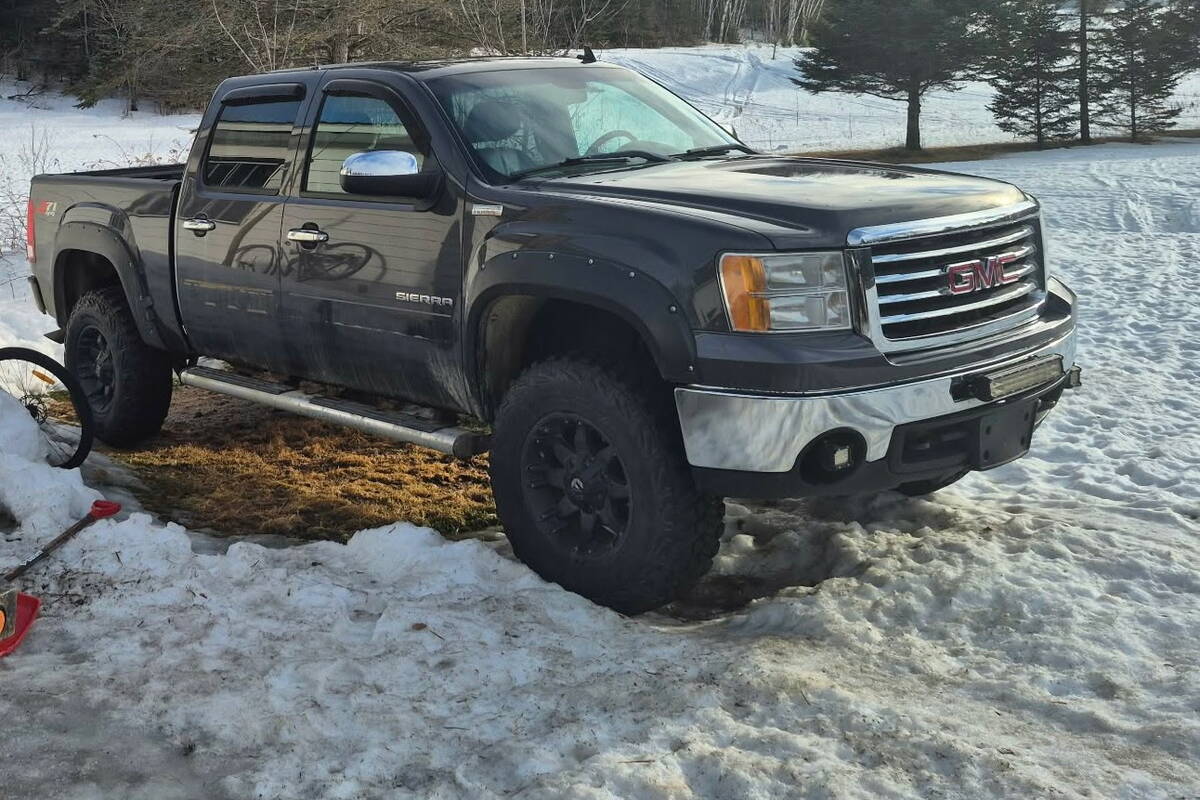 La camionnette est une GMC Sierra grise de 2011. Elle porte la plaque d’immatriculation du Nouveau-Brunswick CUL 305 et le numéro d’identification de véhicule 3GTP2WE27BG245530. Au moment du vol, le VTT se trouvait dans la boîte de la camionnette.