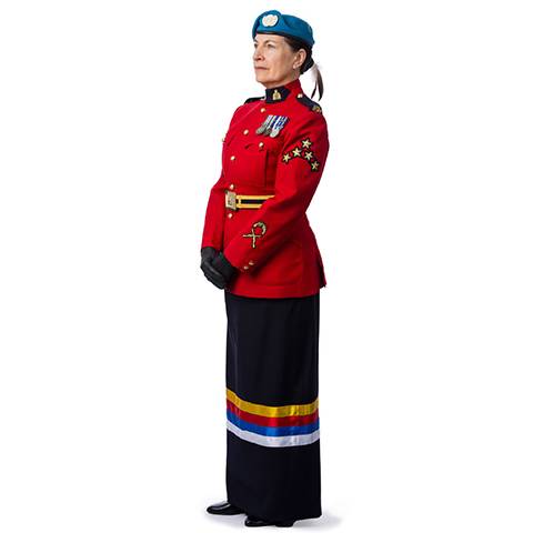 - la jupe à rubans d’uniforme pour les Autochtones qui s'identifient comme des femmes, des personnes non binaires ou des personnes bispirituelles.
