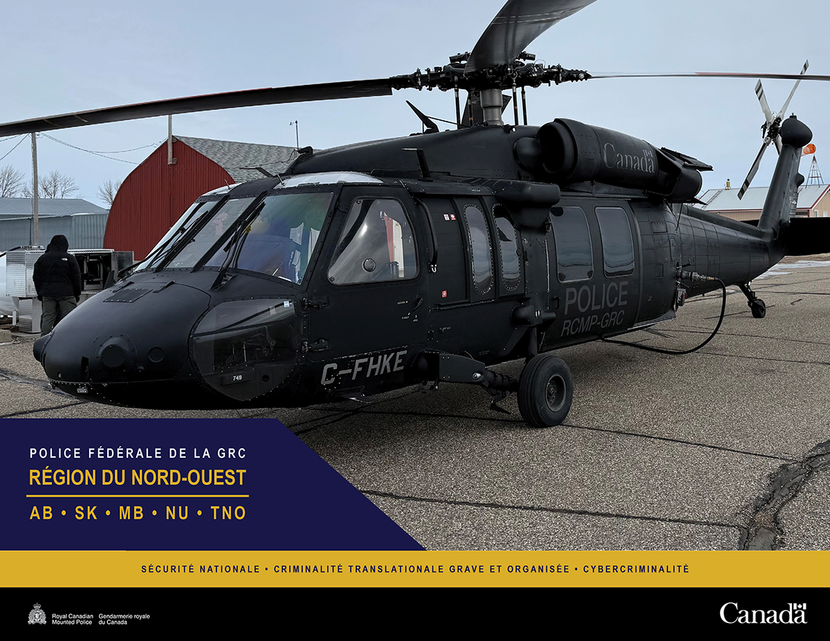 Pendant qu’elle se trouvait à l’hôpital, l’EIALF a été informée vers 9 h 40 qu’un autre possible migrant s’était présenté dans une entreprise de Rosengart à la recherche d’un moyen de transport pour se rendre à Winnipeg. L’EIALF s’est rendue sur les lieux et, avec le soutien de l’hélicoptère Black Hawk de la GRC, qui effectuait déjà une patrouille aérienne dans le secteur, les agents ont trouvé le migrant caché dans un véhicule stationné, déverrouillé. L’EIALF a procédé à son arrestation et l’a transféré à la garde de l’ASFC sans incident.