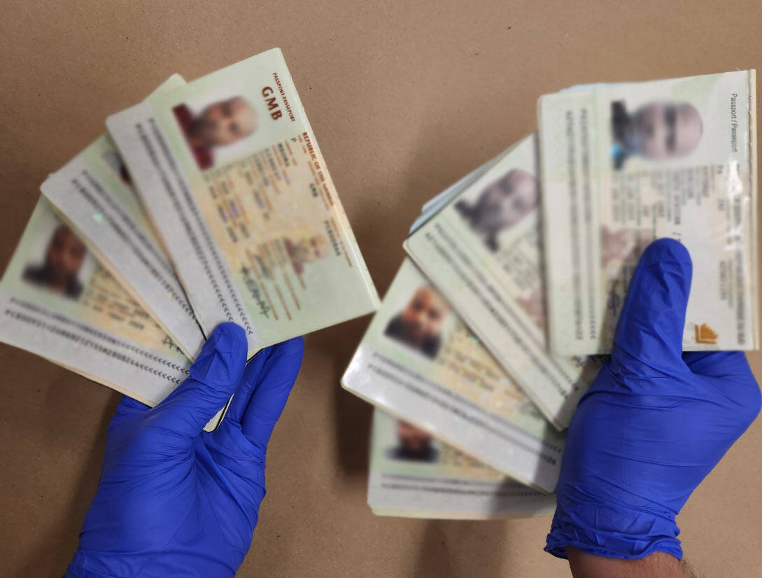 L’enquête a commencé après qu’un agent des services frontaliers de l’ASFC ait signalé un envoi de 1 600 kg en provenance du Nigeria aux fins d’inspection. Pendant l’inspection, les agents de l’ASFC ont repéré sept documents frauduleux dissimulés dans des sandales. Il s’agit de cinq passeports frauduleux de la République de Gambie et de deux passeports d’Afrique du Sud. Les sept passeports frauduleux contenaient tous la même photo d’un homme ayant des noms différents et des renseignements biographiques incohérents.