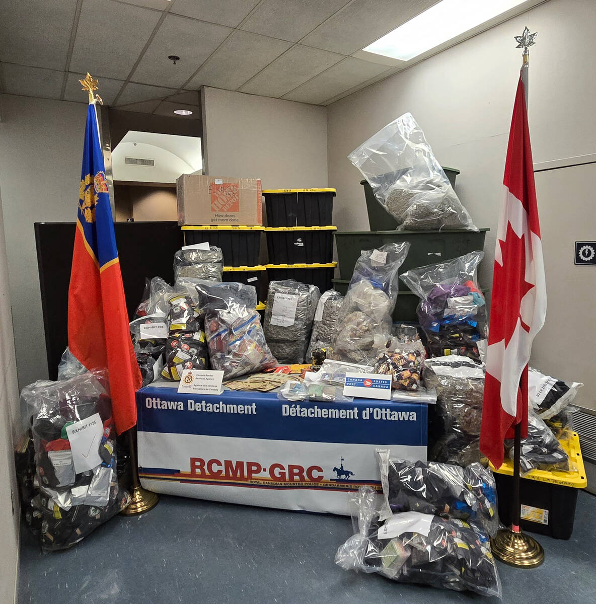 Le 10 mars 2026, la GRC a exécuté deux mandats de perquisition dans deux résidences du sud d’Ottawa. Les enquêteurs ont saisi un total de 485 kg de cannabis séché, 36 kg de haschich, 18 kg de psilocybine et plus de 7 000 produits comestibles infusés au cannabis, des produits de vapotage infusés au cannabis et du tabac non estampillé, pour une valeur marchande totale de plus de 5,5 millions de dollars. Les agents de la GRC ont également saisi 115 360 $ en dollars canadiens et un véhicule utilisé pour commettre les infractions.