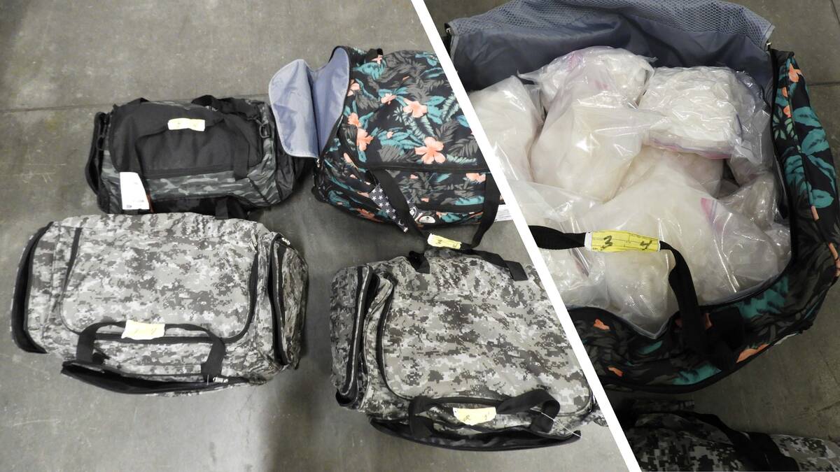 La conductrice, Sukhvinder Kaur Sangha, et le véhicule ont été ramenés au point d’entrée, où un examen plus approfondi a été effectué. Les agents des services frontaliers, aidés d’un chien détecteur de l’ASFC, ont découvert dans le coffre du véhicule plusieurs grands sacs scellés contenant une substance cristalline blanche. En tout, 100 kg de méthamphétamine ont été saisis.