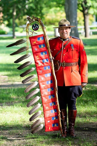 Avant de me joindre à la GRC, des gens m'ont dit qu'en tant qu'Autochtone, je serais confronté au racisme et à la discrimination. Même si je n'ai jamais laissé cela me dissuader de persévérer dans mon projet de devenir policier, c'était toujours présent à mes pensées. Lorsque j'étais à la Division Dépôt, la possibilité de construire une hutte de sudation, de prêter serment sur une plume d'aigle et de porter la ceinture métisse que ma mère m'avait offerte avec mon uniforme de Serge rouge lors de la remise de mon diplôme ont eu une signification immense pour moi et ma famille. Mon expérience à la Division Dépôt a été incroyable. Aux jeunes ou aux adultes autochtones qui souhaitent se joindre à la GRC, j'affirme avec confiance que la discrimination n'y est pas tolérée.
