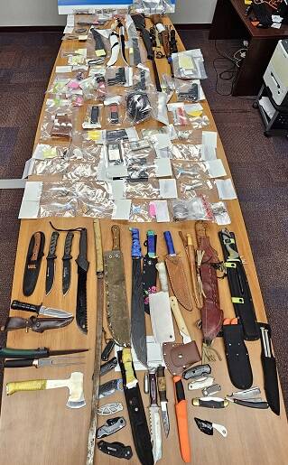 - Des armes prohibées (un coup-de-poing américain, une matraque électronique et un couteau à ouverture automatique)