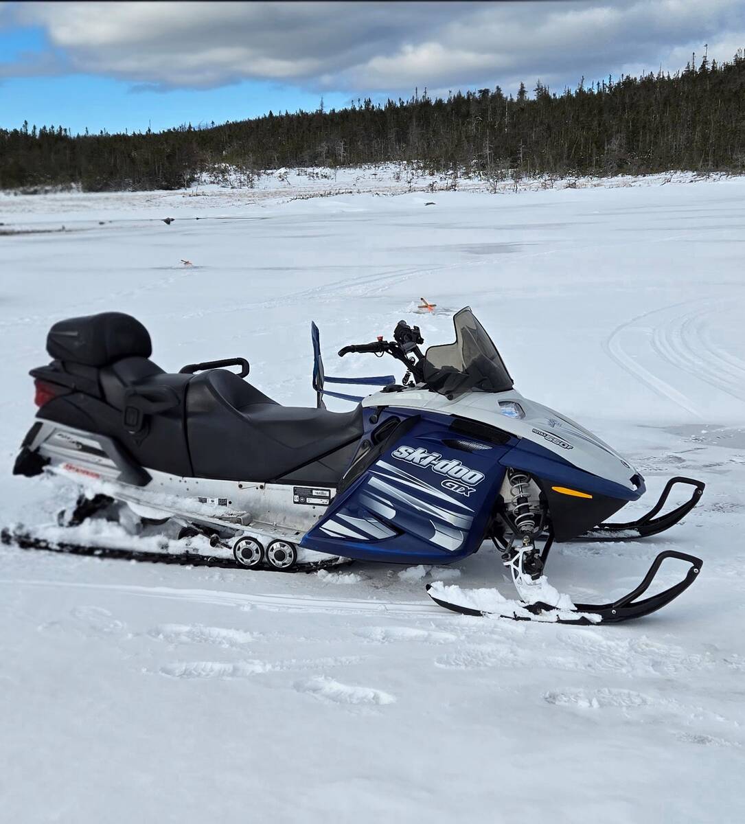 Il s’agit d’une motoneige Ski-Doo GTX bleue et blanche, de l’année 2006, immatriculée à T.-N.-L. (SEL 028), et dont le numéro d’identification est 2BPSEO6A66V000456.