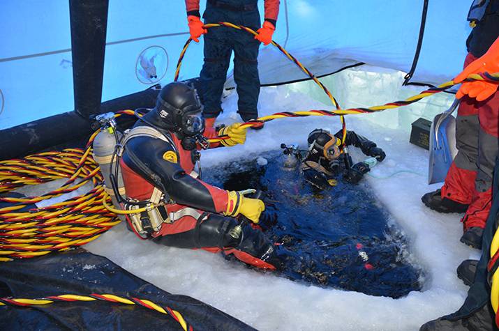 L'équipement des plongeurs varie peu, même pour le travail en eaux glaciales. Ils n'ajoutent alors à leur combinaison étanche que des doublures de gants et des sous-vêtements plus chauds.