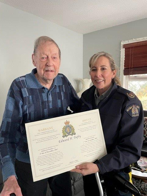 Les sous-officiers brevetés au grade de sergent-major détiennent le grade le deuxième plus élevé de sous-officier à la GRC et ils sont nommés par le commissaire. Ils reçoivent habituellement leur brevet au moment de leur nomination, mais pour le surintendant Trefry, cette attente a été un peu plus longue — 56 ans pour être précis.