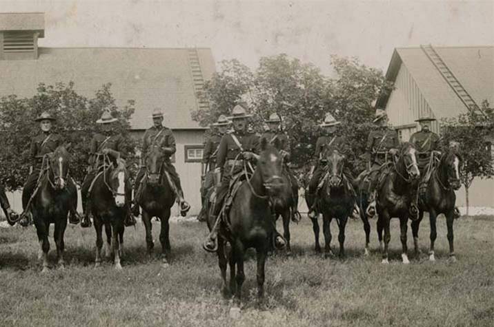 Troupe montée à Maple Creek, en Saskatchewan, dirigée par le sergent-major Christopher Peters. 1915