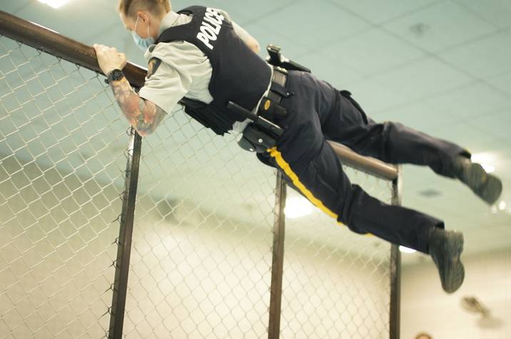 « On fait un grand usage de scénarios, avec des acteurs et des situations réalistes, dans lesquels les membres doivent mobiliser leurs compétences lors de rencontres stressantes, dit le sergent. Ça les aide à accepter la possibilité d'être un jour confrontés à des individus violents, et ça les prépare à de telles rencontres. »