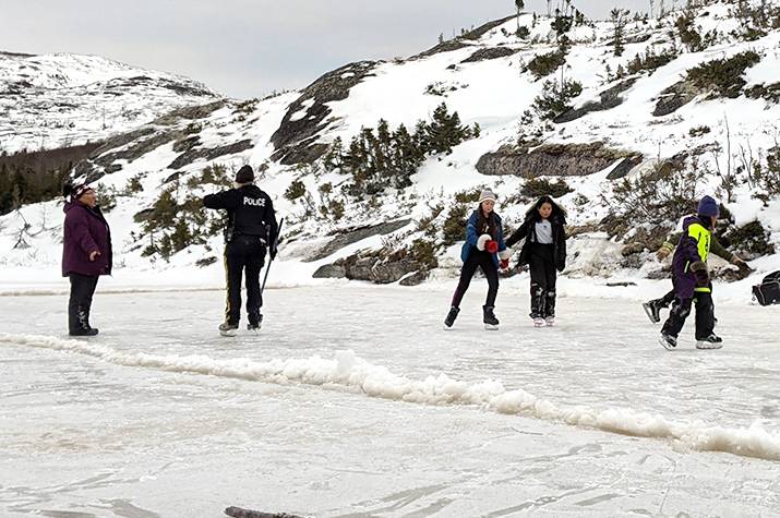 « Si les jeunes l'adoptent, nos efforts n'auront pas été vains », explique le gendarme Dylan Bergmark, qui a décidé de créer une patinoire extérieure à Hopedale (Terre-Neuve-et-Labrador), à l'automne dernier, lorsque des sports intérieurs populaires comme le volleyball ont été annulés à l'école Amos Comnius Memorial en raison de la COVID-19.