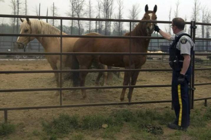 À peine quelques jours après que les feux de forêt aient mené à l'évacuation de Fort McMurray, en Alberta, un camion tirant une remorque à chevaux s'est arrêté à un barrage routier gardé par des agents de la GRC. Deux hommes sont sortis du camion pour aller parler avec les policiers.