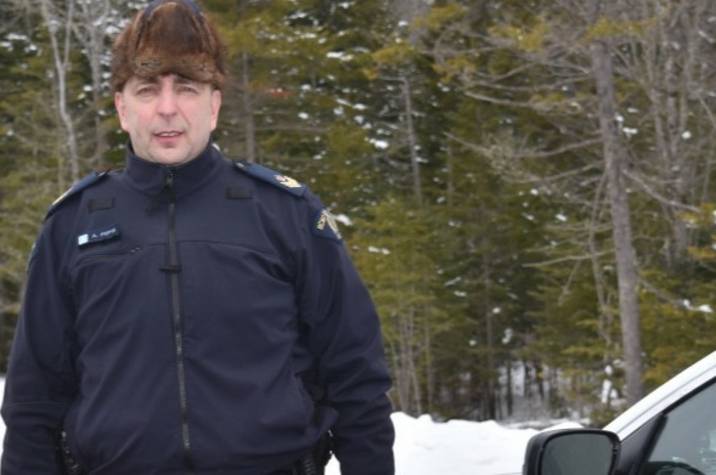 - Au début de ma carrière, j'ai été dépêché sur les lieux d'une collision entre un véhicule et un orignal à l'autre bout du territoire du détachement. Il était près de minuit et je conduisais sirènes et gyrophares allumés sur une route de campagne qui traversait un bois. Tout à coup, un orignal a surgi devant moi. Il était si proche que je suis étonné de ne pas l'avoir heurté. Mais je suis sûr que ma vitre latérale l'a effleuré. Je ne roulais pas si vite, mais au-delà de la limite parce que je répondais à un appel d'urgence. C'est là que j'ai vraiment réalisé l'importance de ralentir. Il vaut mieux arriver tard que pas du tout.